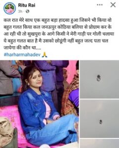बलिया में भोजपुरी गायिका की गाड़ी पर चलाई गोली, गायिका ने सोशल मीडिया पर दी जानकारी बलिया। बलिया की भोजपुरी...